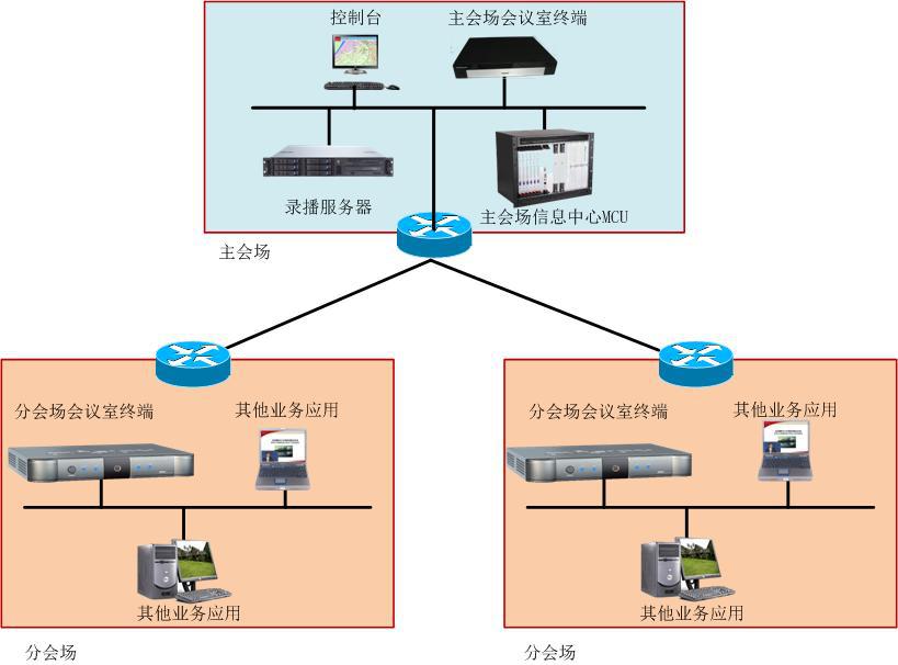 在各分会场部署电视会议终端,实现远程行政会议、点对点电视会议等功能。