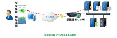 终端安全: SSL VPN产品具备安全桌面技术以防止重要数据留存在用户终端而泄漏的风险。接入SSL VPN后的用户将在其终端主机上生成一个安全桌面,所有通过SSL VPN发生的访问行为和传输的应用数据都将置于该安全桌面中,此安全桌面中的所有数据均无法存储到本机、无法拷贝到U盘等外设设备、无法通过局域网/互联网外发,任何方式都无法将数据从安全桌面内泄露出去。当用户断开SSL VPN后,安全桌面及其中的所有数据将一并销毁,从而彻底保障重要数据被终端访问时的高安全性。