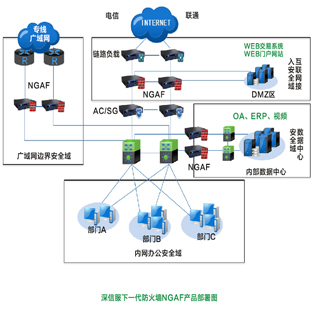 深信服下一代应用防火墙(NGAF)是面向应用层设计,能够精确识别用户、应用和内容,具备完整安全防护能力,能够全面替代传统防火墙,并具有强劲应用层处理能力的全新网络安全设备。NGAF解决了传统安全设备在应用管控、应用可视化、应用内容防护等方面的巨大不足,同时开启所有功能后性能不会大幅下降。 NGAF 不但可以提供基础网络安全功能,如状态检测、VPN、抗DDoS、NAT等;还实现了统一的应用安全防护,可以针对一个入侵行为中的各种技术手段进行统一的检测和防护,如应用扫描、漏洞利用、Web入侵、非法访问、蠕虫病毒、带宽滥用、恶意代码等。NGAF可以为不同规模的行业用户的数据中心、广域网边界、互联网出口等场景提供更精细、更全面、更高性能、更完整的应用内容防护方案。