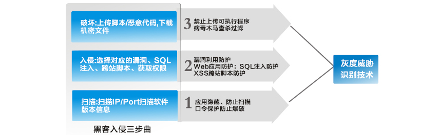 ● 基于攻击过程的服务器保护,防御黑客扫描、入侵、破坏三步曲;