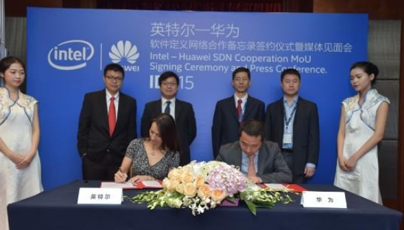 2015年4月9日 - 全球领先的信息与通信解决方案供应商华为,与英特尔公司在2015深圳英特尔信息技术峰会(Intel Developer Forum,IDF15) 上正式签署软件定义网络产品合作备忘录。本次合作旨在整合双方优势资源,携手打造全新软件定义网络(SDN)产品和解决方案,共同推进网络基础设施的变 革,软件定义基础设施(Software Defined Infrastructure)的愿景。英特尔公司数据中心事业部副总裁兼网络平台事业部总经 理Sandra Rivera、华为交换机与企业通信产品线总裁刘少伟等出席了本次签约仪式。