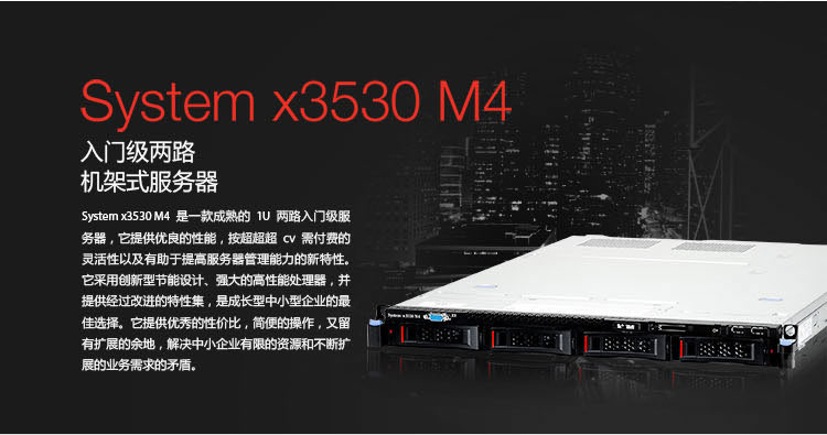 System x3530 M4系列是一款服务性能更好、存储容量更充裕且占用空间更小,有助于支持更广泛的一般业务工作负载产品类别为机架式。System x3530 M4系列提供了更灵活配置的选项以及更简易的升级途径。