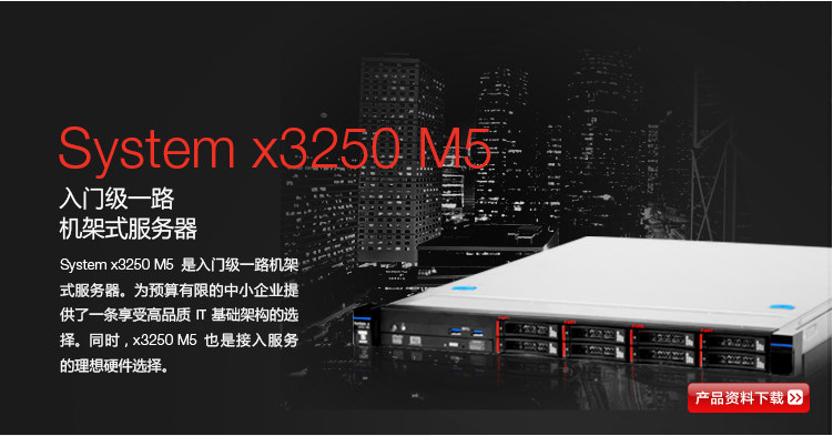 System x3250 M5 系列是一款入门级的机架式服务器,性价比方面表现很出色,定位入门级市场,纤薄紧凑的1U机架式设计让该机能够进行集中大密度部署,灵活的配置方案也更符合中小型企业用户的实际需要。