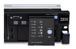 和光通路诊断可以主动监控系统的子组件,并提供先进的电源、风扇、VRM、磁盘、 处理器和内存警告。冗余的热插拔组件使得可以轻松更换故障组件,而无需将系统停机。光通路诊断会显示有关故障组件的可视警告灯指示器,使得有足够时间在故障发生前更换组件,有助于确保高可用性。
