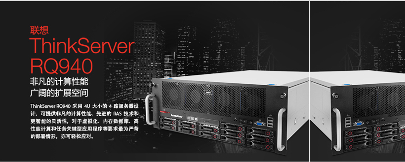联想 ThinkServer RQ940采用4U大小的4路服务器设计,可提供非凡的计算性能、先进的RAS技术和智能灵活性,对于各种不同难题,亦可轻松的应对。