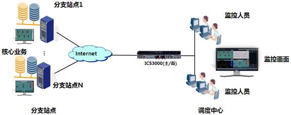 远程桌面矩阵监控解决方案基于TCP/IP网络协议,采用ICS3000网络运维安全网关,无需其它硬件辅助设备,基于监控客户端实现目标IT设备运行桌面的远程监控,动态巡视,安装简易,部署便捷。
