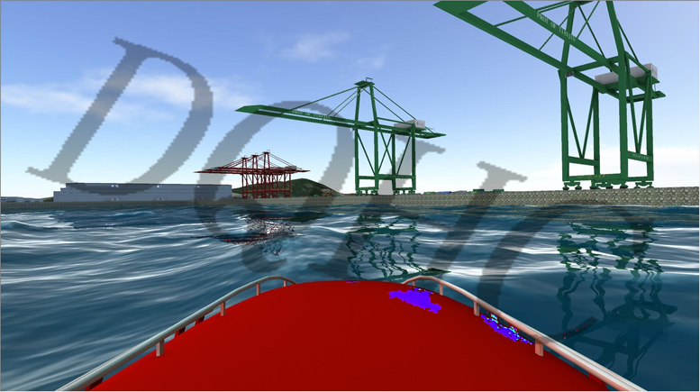 系统软件与硬件配合能够根据受训者的操作,实时提供与实际船舶相似的视、听、运动、操作感觉,实现主动式驾驶。根据不同类型的船舶构建船舶动力回转数学物理模型,真实的反应船舶运动特性。