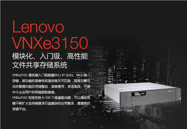 EMC VNXE3150适用于小型企业、价格合理的统一存储平台。具有便于管理、资源调配和保护的特点。VNXe3150统一存储全面针对虚拟化进行了调优,保留了业界领先的简易性,适合于只有IT通才的中小型企业,以及大型企业和政府的部门。